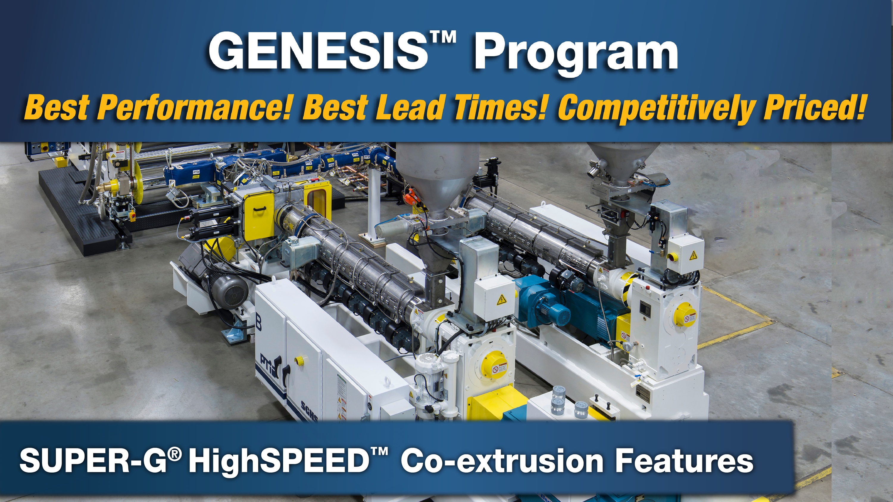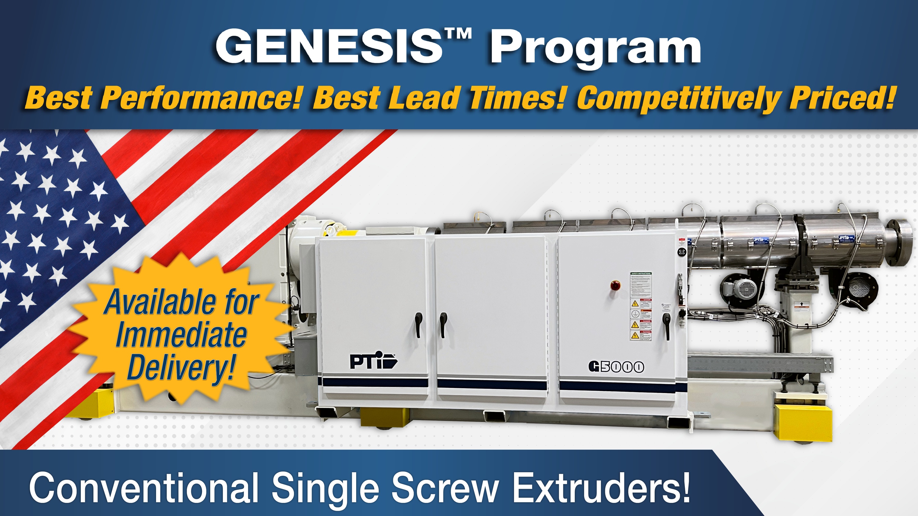 Structured as comprehensive inventory of PTi extrusion systems, with an expedited delivery initiative that reduces ordinary system deliveries by over 3 months, the GENESIS™ Program is the modus for achieving full productivity and profit initiatives over that of conventional design and build methods.