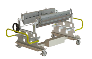Attachment of on-board "A-frames" transforms the system to a chrome roll servicing position.