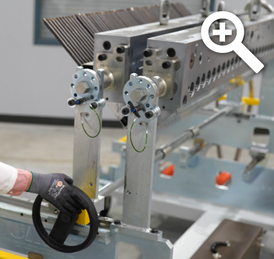 The Feed Screw Roller assembly enables the servicing station for inspections and maintenance of the extruder feed screw.
