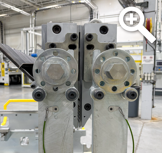 Die trunnions nest in rollers for ease of rotating die halves, while toolless quick-pins secure the desired in-service position.