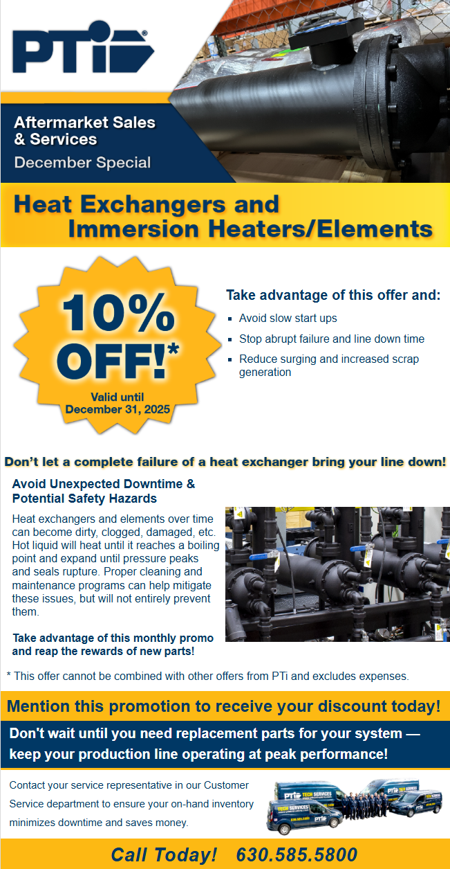 PTi stocks a full range of spare parts to keep your systems up and running. Ensure your original equipment performance and service life with replacement parts you can count on! Don't wait until you need a replacement part for your system—keep your production line operating at peak performance.